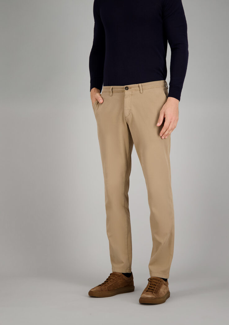 De hoogwaardige travelkwaliteit, bestaande uit 85% polyamide en 15% elastan, maakt deze chino uitzonderlijk comfortabel. De stof is licht, ademend en volledig stretch, waardoor de broek optimale bewegingsvrijheid biedt en nauwelijks kreukt – ideaal voor onderweg, op kantoor of tijdens lange dagen.