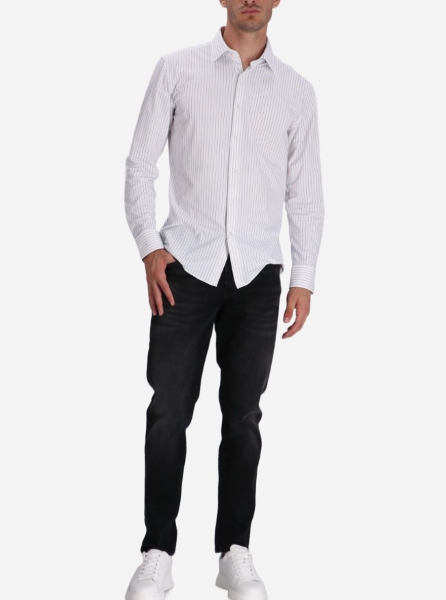 Ontdek een essentieel item voor je garderobe met dit stijlvolle overhemd van BOSS. Het gestreepte patroon voegt een eigentijdse en verfijnde uitstraling toe, geschikt voor allerlei gelegenheden. Dankzij de nauwsluitende pasvorm benadrukt het je silhouet en biedt het zowel stijl als draagcomfort. Combineer het moeiteloos met je favoriete broek en ervaar de kwaliteit en het design waar BOSS om bekend staat.
