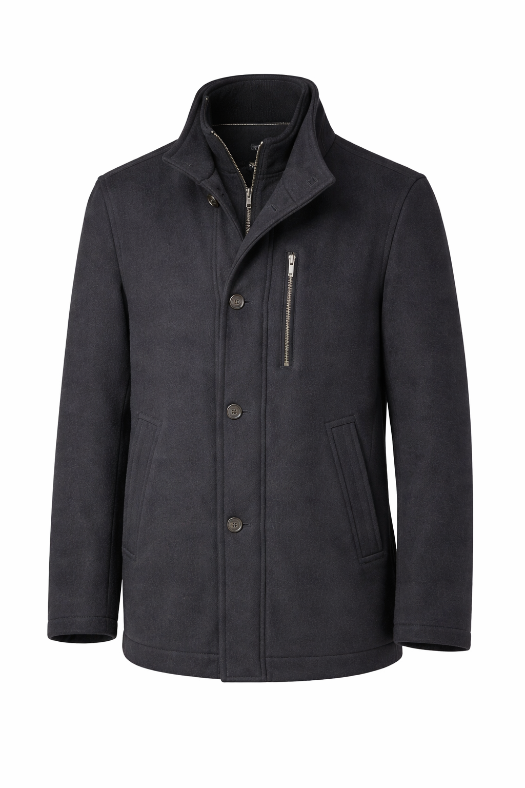 Deze Bugatti wintercoat combineert een moderne, strakke uitstraling met optimaal draagcomfort. De rijke wolblend zorgt voor warmte en een luxe uitstraling, terwijl de jas licht en vormvast blijft. De opstaande kraag en minimalistische afwerking maken dit een tijdloze keuze.