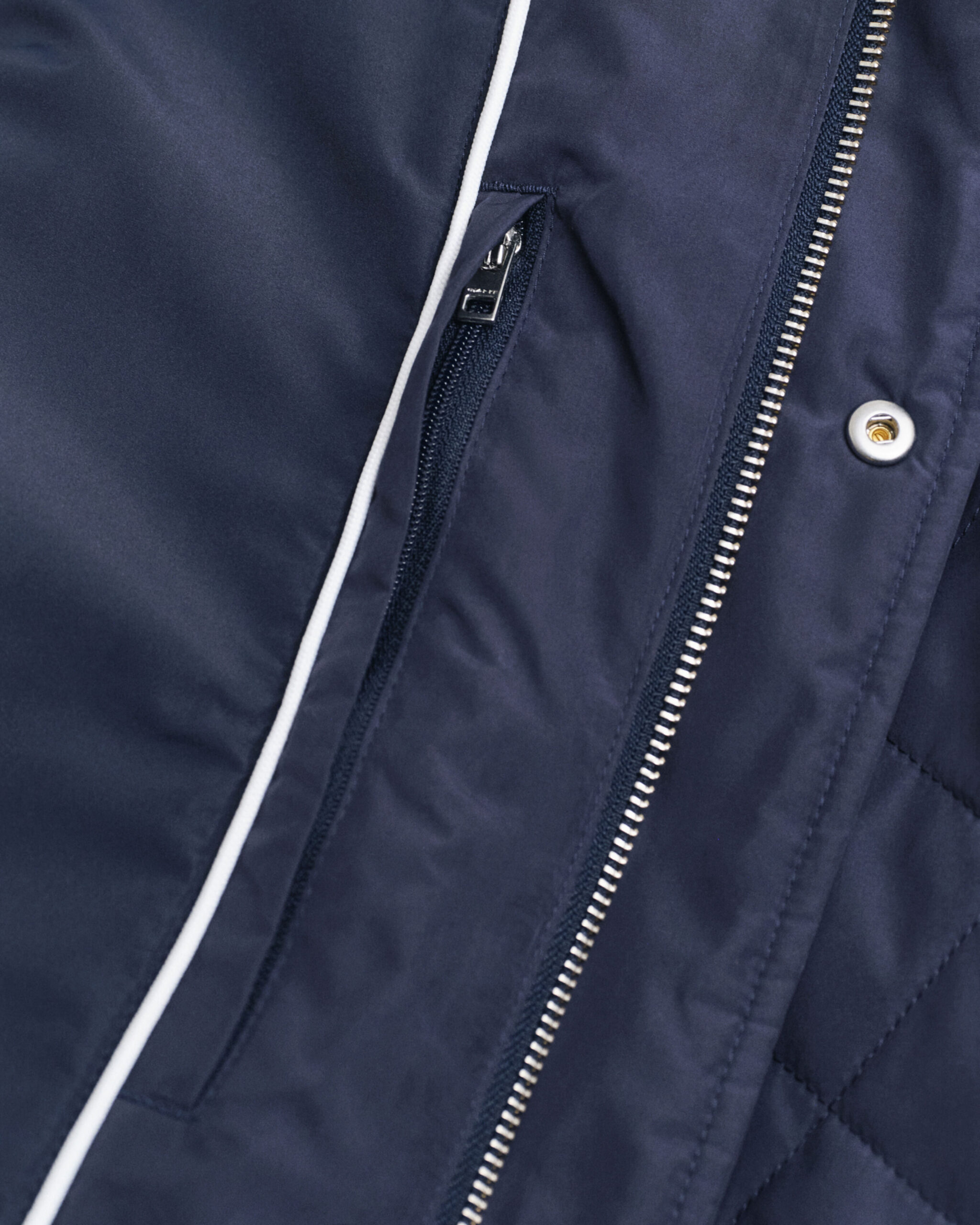 Dit gewatteerde Windcheater jack is gemaakt in een doorgestikt ruitjespatroon en heeft een vulling van gerecycled polyester. Verder heeft het een waterafstotende laag. Dit middellange item heeft een normale pasvorm met een opstaande kraag en een knopenlijst middenvoor met drukknopen en een blinde ritssluiting aan de onderkant. Andere designelementen zijn de handwarmerzakken opzij, klepzakken aan de onderkant en twee binnenzakken. Het jack is verder afgewerkt met een geborduurd logo op de borst en ons ‘locker’-lusje op de rug. Dit jack heeft een duurzame waterafstotende behandeling (Durable Water Repellent (DWR)) ondergaan die helpt om water af te voeren bij lichte weersomstandigheden.
