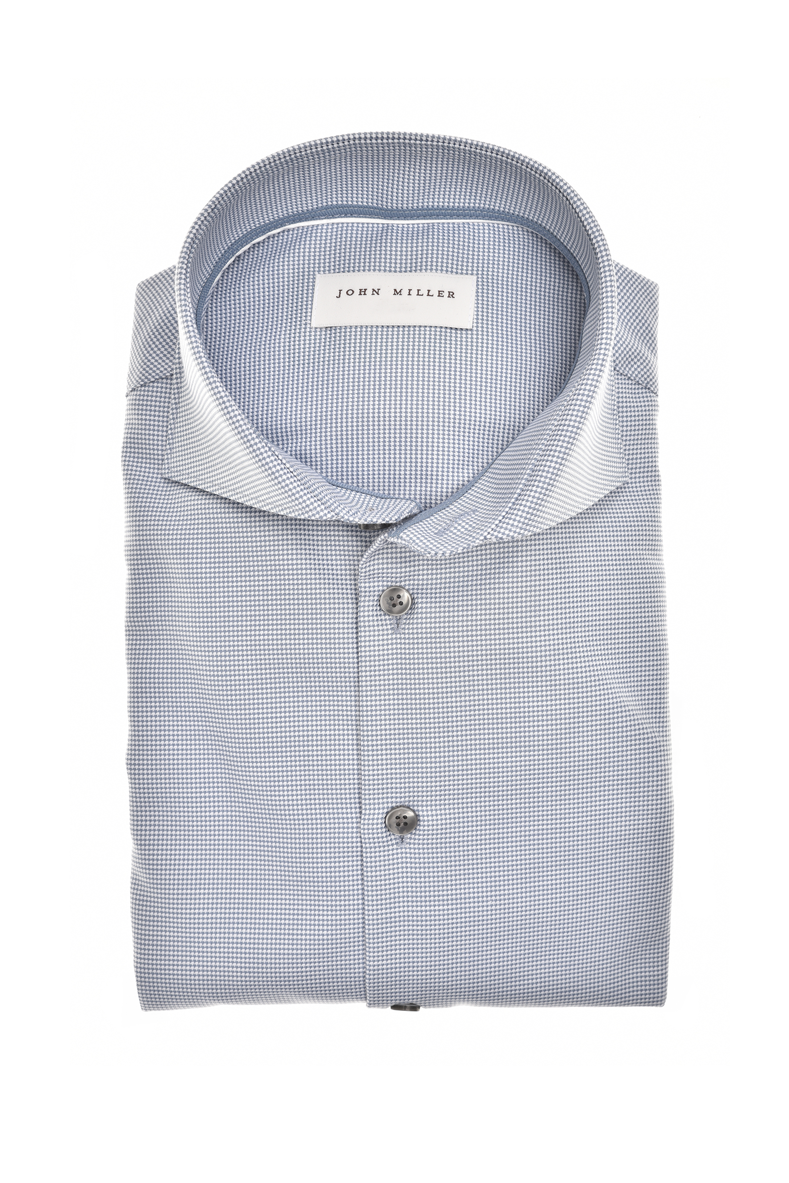 John Miller overhemd in middenblauw met een subtiel micro-ruitje, uitgevoerd in een tailored-fit pasvorm. Strijkvrij en onderhoudsvriendelijk, ideaal voor zowel een nette zakelijke look als een casual outfit. Een veelzijdig overhemd dat moeiteloos gekleed of casual gedragen kan worden.