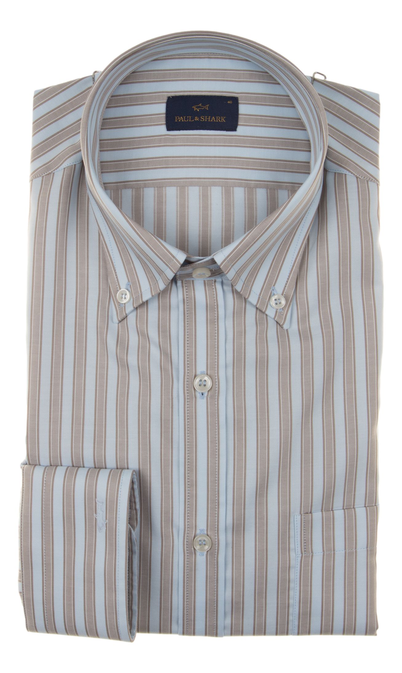 Stijlvol gestreept overhemd van Paul & Shark, gemaakt van zachte 100% katoen voor optimaal draagcomfort. Het model heeft een button-down kraag, een borstzakje en een ruime pasvorm. Verkrijgbaar in een frisse mix van bruin en lichtblauw. Perfect voor zowel casual als nette looks.